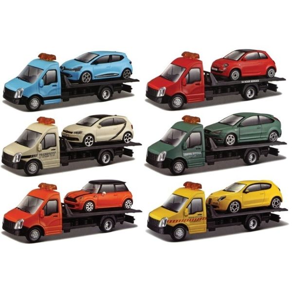 Bburago Street fire Flatbed Transport, car Hauler w/ass 1:43