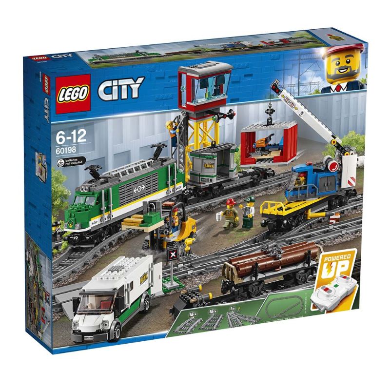 Овој сет на Lego City се одликува со моторизиран мотор со 10-брзински Bluetooth далечински управувач, достапна возачка кабина, кран-вагон со ротирачка и продолжена рака за бум, вагон со контејнер со 2 контејнери и влезен вагон, плус блиндиран камион со отворени врати, и ви forушкар со кафез за отворање ролни и ви lifушки за подигнување. Овој кул комплет LEGO за воз, исто така, вклучува целосна кружна патека со 16 закривени шини, 16 прави шини и прекинувач на пругата со лост, плус контролен центар со скалила и 2 палети што можат да се градат со сметки за пари, елементи за златна шина, скутер за снег и 6 LEGO минифигури.