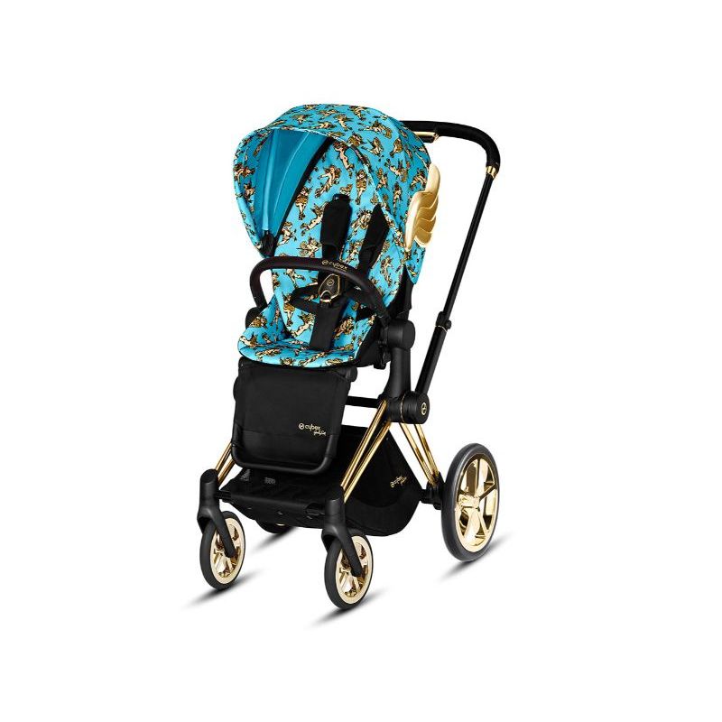Cybex Priam Lux Seat дизајнирана од американскиот дизајнер Џереми Скот кој ги разбива дизајнерските обичаи на модниот свет, создавајќи уметнички дела визуелно екстравагантни и исто така функционални. Златните додатоци и крилјата додаваат дополнителна искра што е невозможно да се пропушти. Cybex Priam Lux е модул за количката Priam, што е уникатна од Cybex. Количката се одликува со висок квалитет, стилски дизајн и голема хауба што ќе заштити од дожд и лоши временски услови. Седиштето е реверзибилно. Потпирачот за грб лесно се менува во хоризонтална положба, обезбедувајќи му на бебето удобен сон и дозволувајќи употреба на седиштето од новороденчето. Има голема XXL тенда со UPF50 + заштита од сонце го штити вашето бебе. Висина на седење на 80 см – може да се користи и како столче за јадење ако е потребно. Безбедноста е загарантирана со меки ремени со пет точки. Безбедносните ремени се брзи и лесни за прилагодување. Одвоен браник за задржување обезбедува дополнителна безбедност. Рамката е од лесна алуминиумска конструкција. Тркалата се за сите терени со мека амортизација.