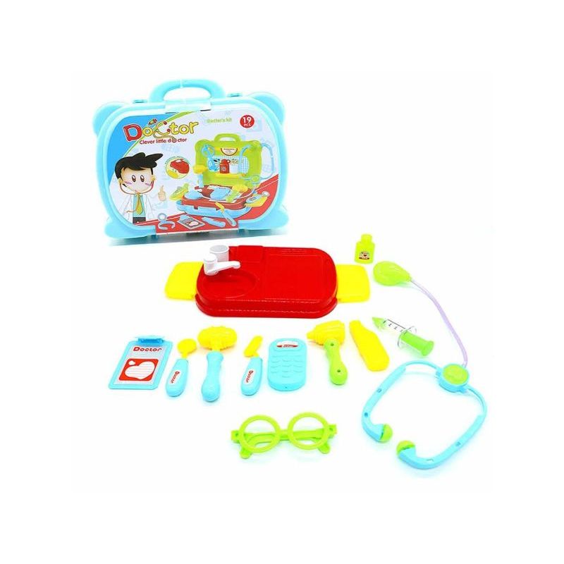 Неопходен сет за секој мал иден доктор! Без разлика дали прегледувате пријател, милениче или играчка – во практичен куфер ги имате сите потребни лекарски алатки: стетоскоп, термометар, шприц …
