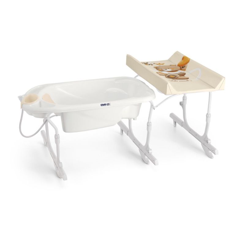 Станица за пресоблекување и бањање Idro Baby со двострана функционалност. Од 0 до 6 месеци се користи анатомскиот дел на кадата – ја користите оваа положба од раѓање и се додека не седи само бебето и од 6 + месеци ( до 11кг ) – оваа положба ја користите кога бебето може само да седи. На кадата има и прегради за чување средства за хигиена. Подлогата за пресоблекување со безбедносни страници комбинира максимална удобност и практичност.