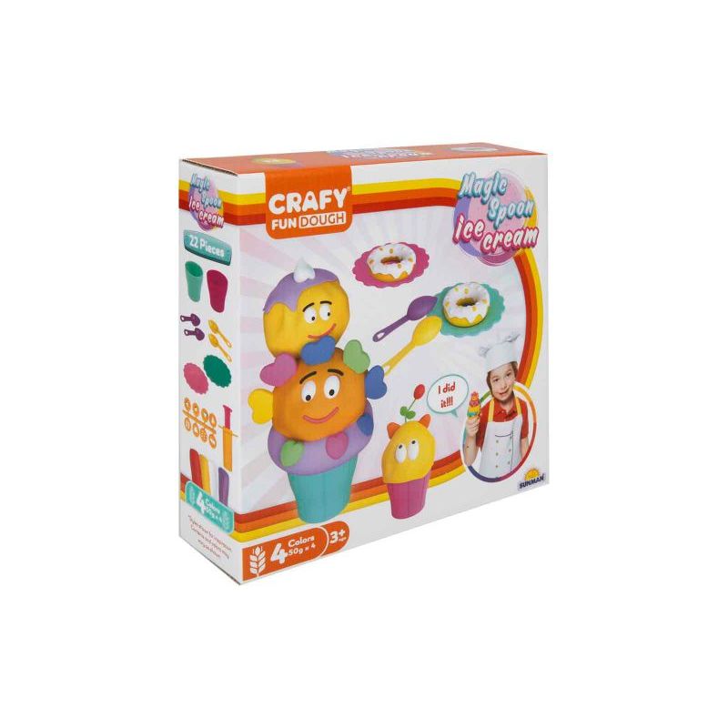 Креативноста никогаш не изгледала толку вкусно со сладоледот Magic Spoon! Сега е во ваши раце да го подготвите сладоледот што го сакате! Можете да создадете нови бои со мешање на пластелинот и да го направите сладоледот од соништата!