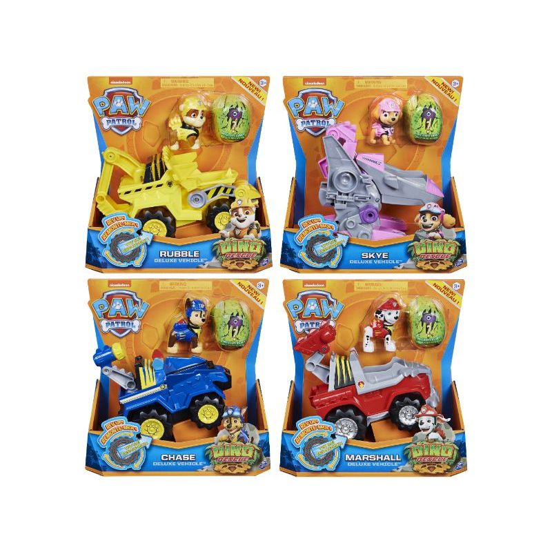 Уживајте во играта со вашите омилени кученца PAW Patrol со нивните возила и новите пријатели – диносаурусите! Сетовите се продаваат одделно.