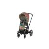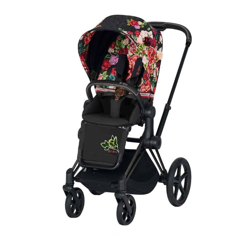 Cybex Priam од модната колекцијата Spring Blossom Dark. Cybex Priam Lux е модул за количката Priam, што е уникатна од Cybex. Количката се одликува со висок квалитет, стилски дизајн и голема хауба што ќе заштити од дожд и лоши временски услови. Седиштето е реверзибилно. Потпирачот за грб лесно се менува во хоризонтална положба, обезбедувајќи му на бебето удобен сон и дозволувајќи употреба на седиштето од новороденчето. Има голема XXL тенда со UPF50 + заштита од сонце го штити вашето бебе. Висина на седење на 80 см – може да се користи и како столче за јадење ако е потребно. Безбедноста е загарантирана со меки ремени со пет точки. Безбедносните ремени се брзи и лесни за прилагодување. Одвоен браник за задржување обезбедува дополнителна безбедност. Рамката е од лесна алуминиумска конструкција. Тркалата се за сите терени со мека амортизација.
