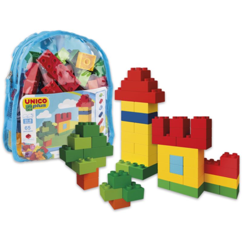 Транспарентен пластичен ранец кој содржи коцки во боја.