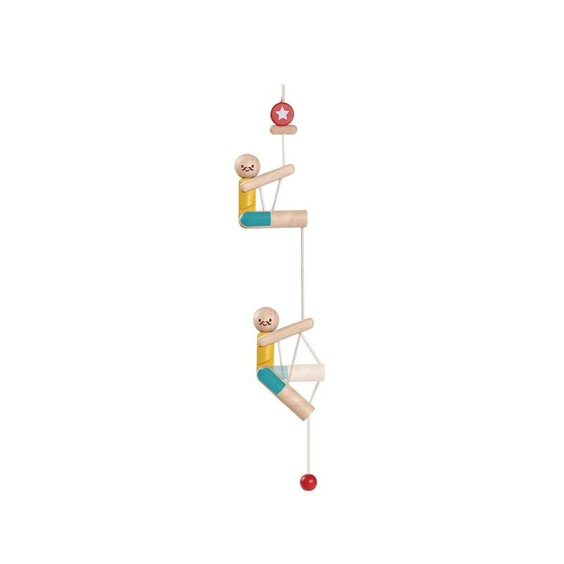 Повлечете го јажето за да го гледате акробатот како се искачува на врвот или натпреварувајте се со вашите пријатели за најбрзо време до врвот. Помага во развој на моторни вештини, координација и причина и последица.