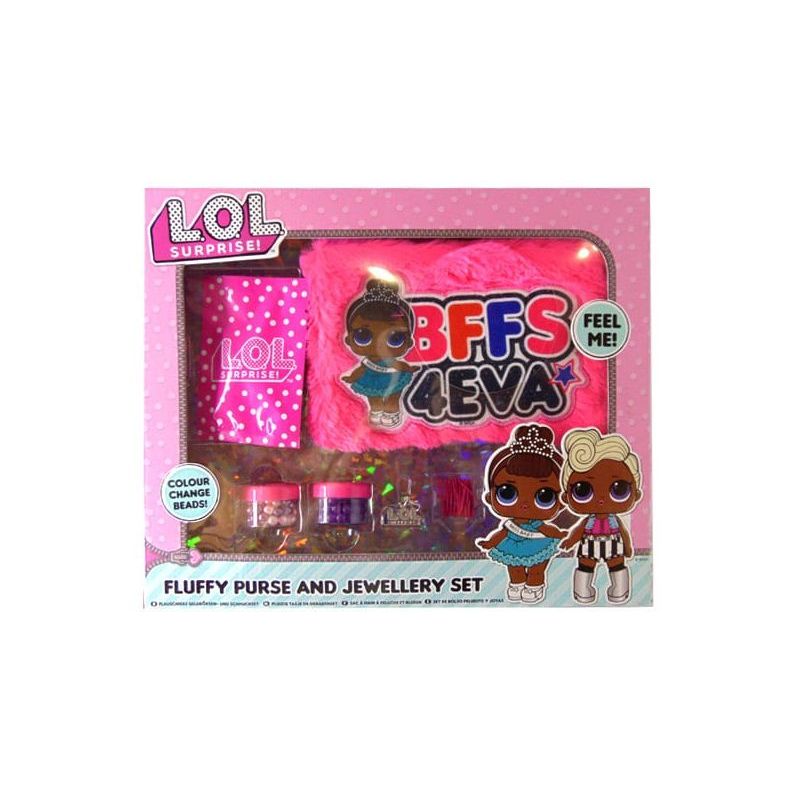 Ташничка и накит со мотиви од LOL за девојчиња. Овој LOL сет содржи сјајна ташничка и монистра за да направите сопствен накит. Има доволно монистри за да направите две нараквици, за вас и вашата најдобра пријателка.