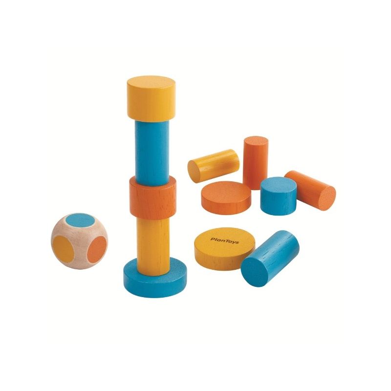 Производот е наменет за деца над 3 години. 12 различни бои на коцки во 3 различни форми и 1 коцка за фрлање.