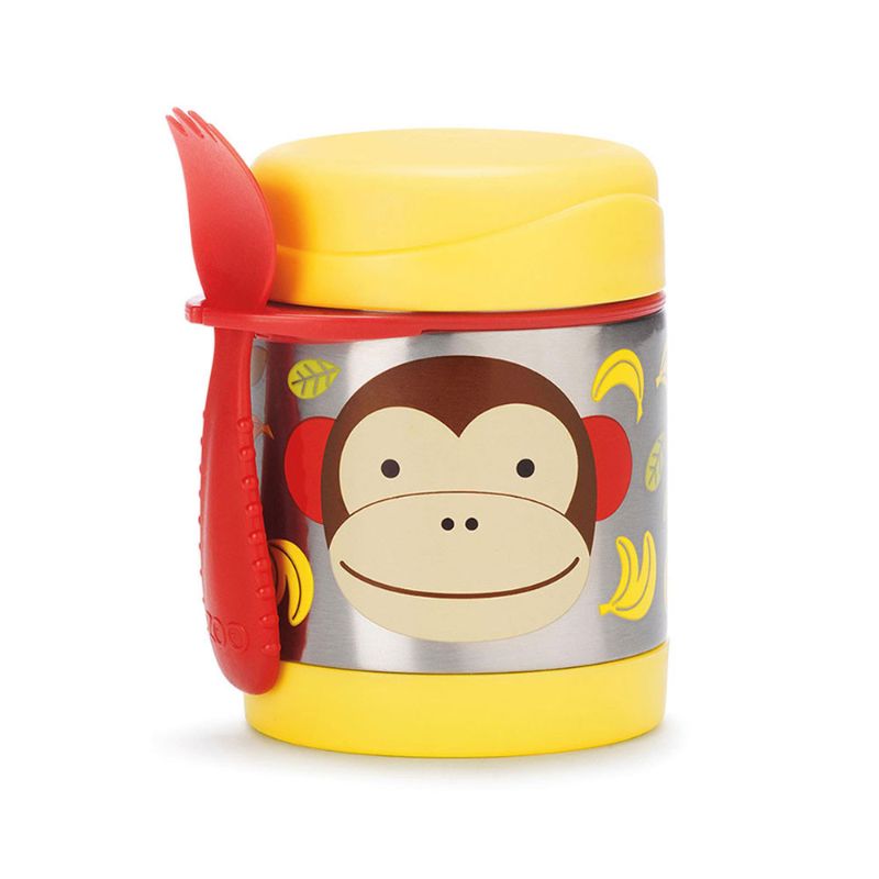 Детски термос за јадење од нерѓосувачки челик кој ја одржува храна за деца топла или ладна. Термосот ја одржува храната топла 7 часа или ладна 5 часа. Вградениот држач одговара на повеќето додатоци. Вклучува вилушка што може да се користи и како лажица поради формата.