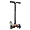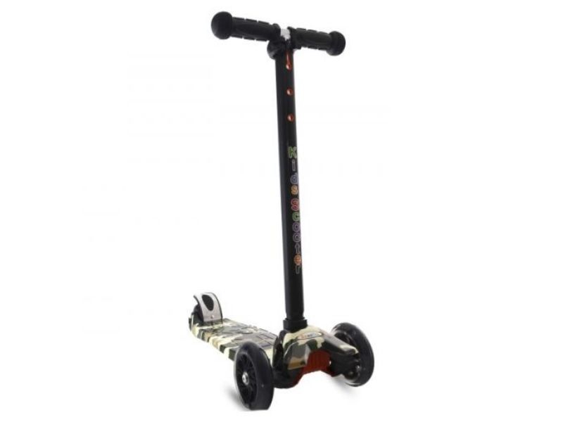 Тротинет со светлосни силиконски тркала, лесни за ракување и можат да издржат тежина до 60 кг. Со алуминиумска шипка прилагодлива во висина до 3 точки го следи растот на детето во различни возрасти и му овозможува пријатно возење. Со притискање на сопирачката на задното тркало, скутерот застанува и овозможува побезбедно возење.
