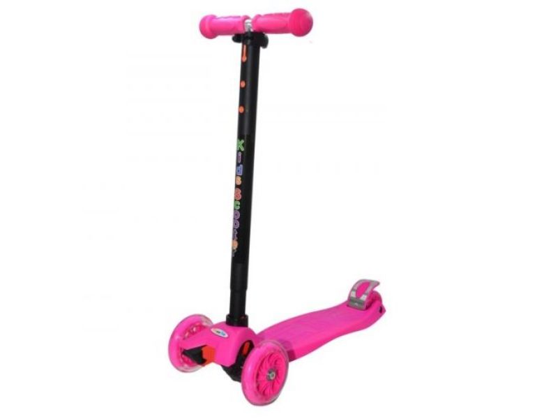 Тротинет со светлосни силиконски тркала, лесни за ракување и можат да издржат тежина до 60 кг. Со алуминиумска шипка прилагодлива во висина до 3 точки го следи растот на детето во различни возрасти и му овозможува пријатно возење. Со притискање на сопирачката на задното тркало, скутерот застанува и овозможува побезбедно возење.