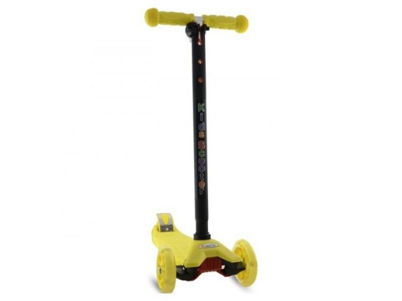 Тротинет со светлосни силиконски тркала, лесни за ракување и можат да издржат тежина до 60 кг. Со алуминиумска шипка прилагодлива во висина до 3 точки го следи растот на детето во различни возрасти и му овозможува пријатно возење. Со притискање на сопирачката на задното тркало, скутерот застанува и овозможува побезбедно возење.
