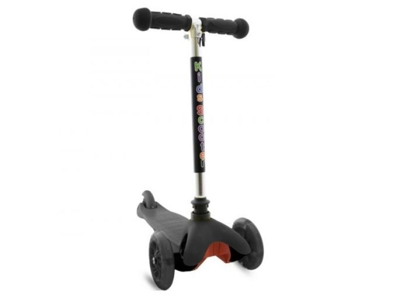 Тротинет со подесување во црна боја, со 2 тркала напред