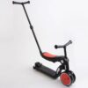 Тротинет 3 во 1 со седиште и рачка за водење. Тротинетот има три тркала, што ја зголемува стабилноста и безбедноста при возење. Погоден за развој на моторни вештини и координација преку забава на децата.