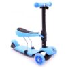 Тротинет 3 во 1 со седиште и рачка за водење. Тротинетот има три тркала, што ја зголемува стабилноста и безбедноста при возење. Погоден за развој на моторни вештини и координација преку забава на децата.